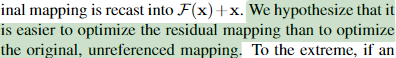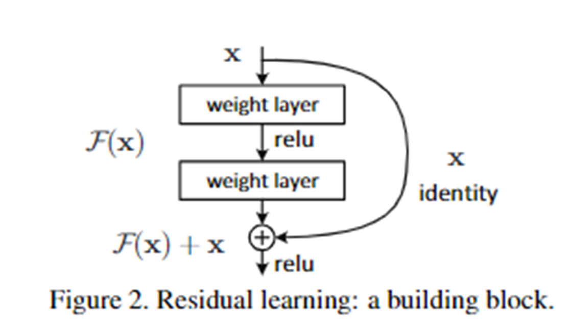 층을 바로 연결하지 않고 몇 개의 층을 스킵하고 연결하여 F(x)라는 특정 layer에 국한된 함수를 0으로 만드는 학습이 가능해지며 모델이 이미 최적화되었을 때 층을 더 쌓아도 기울기가 소실/폭주되지 않도록 돕습니다.